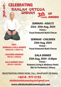 RAMLAN ORTEGA SHIHAN’S 30TH ANNIVERSARY CELEBRATIONS RAMLAN ORTEGA SHIHAN’S 30TH ANNIVERSARY CELEBRATIONS 2024 marks 30th years since Ramlan Ortega started his journey in Aikido. To